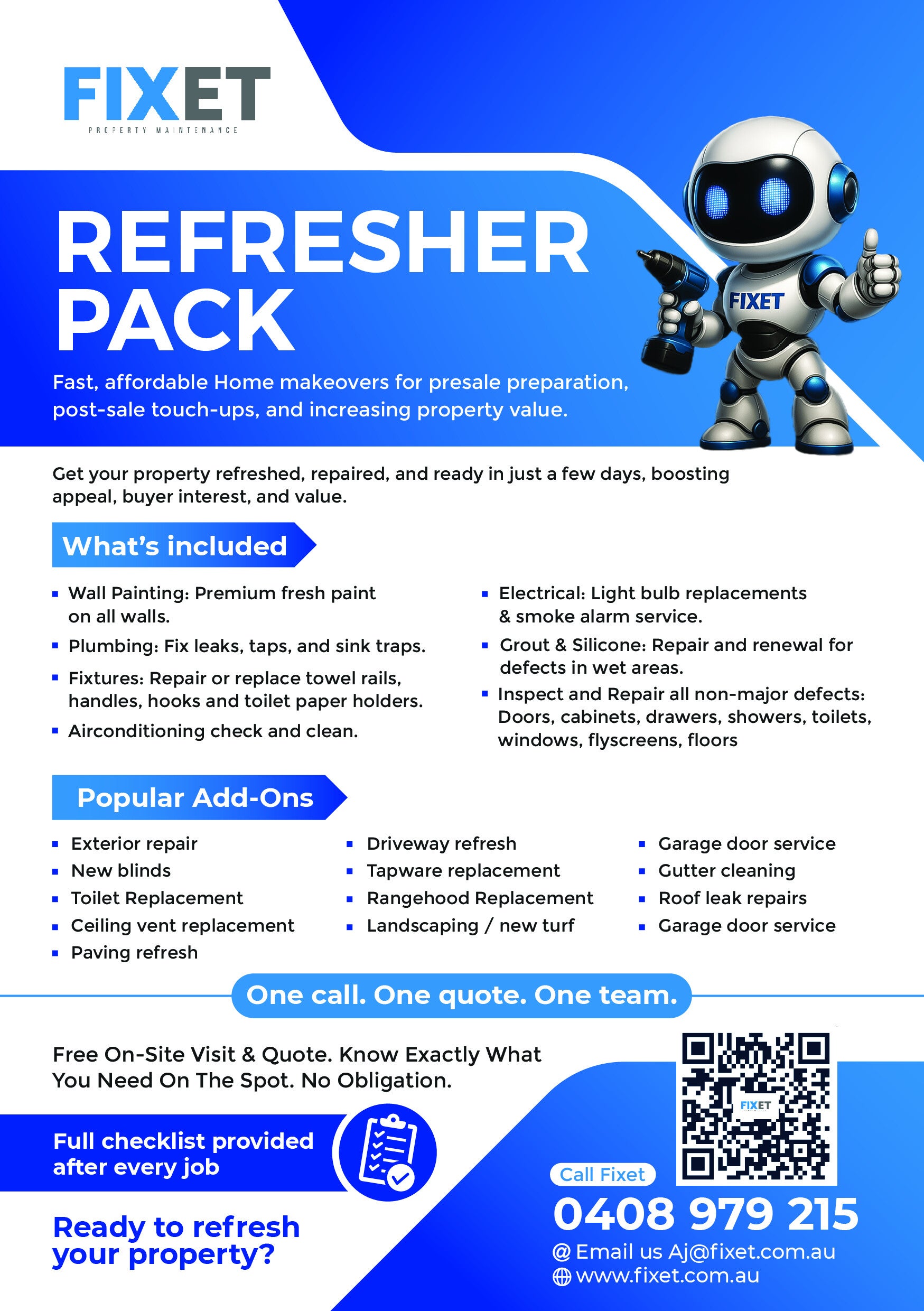 We take pride in honest work, attention to detail, and service that’s built around your needs. Whether you’re preparing a property for sale, moving out, or just need things fixed, Fixet is here to help.